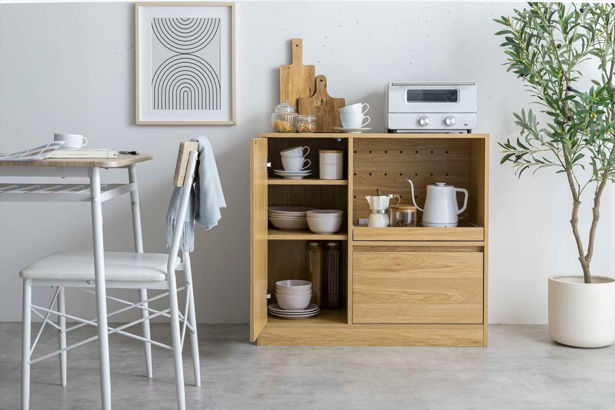 キッチン家電や食器・小物などをまとめて収納できる『Conina(コシーナ)』シリーズのレンジ台