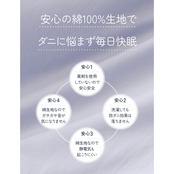 ダニが通過できない高密度の生地を使用した肌掛けです。ダニが通過できない生地なので「薬剤」を使うことなくお子さまからお年寄りまで安心してお使いいただけます。
