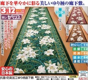 ●廊下やキッチンにおすすめのロングサイズ、ゆりの花柄が印象的です。