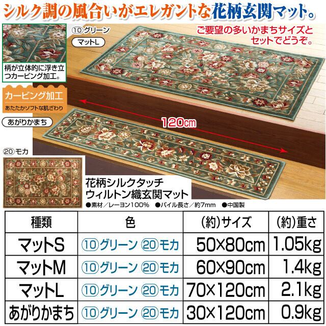 花柄シルクタッチウィルトン織玄関マット マットM