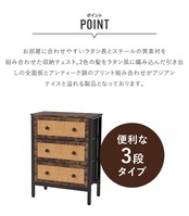 2色の髪をラタン風に編み込んだ引き出しの全面板とアンティーク調のプリント組み合わせがアジアンテイスと溢れる製品となっております。