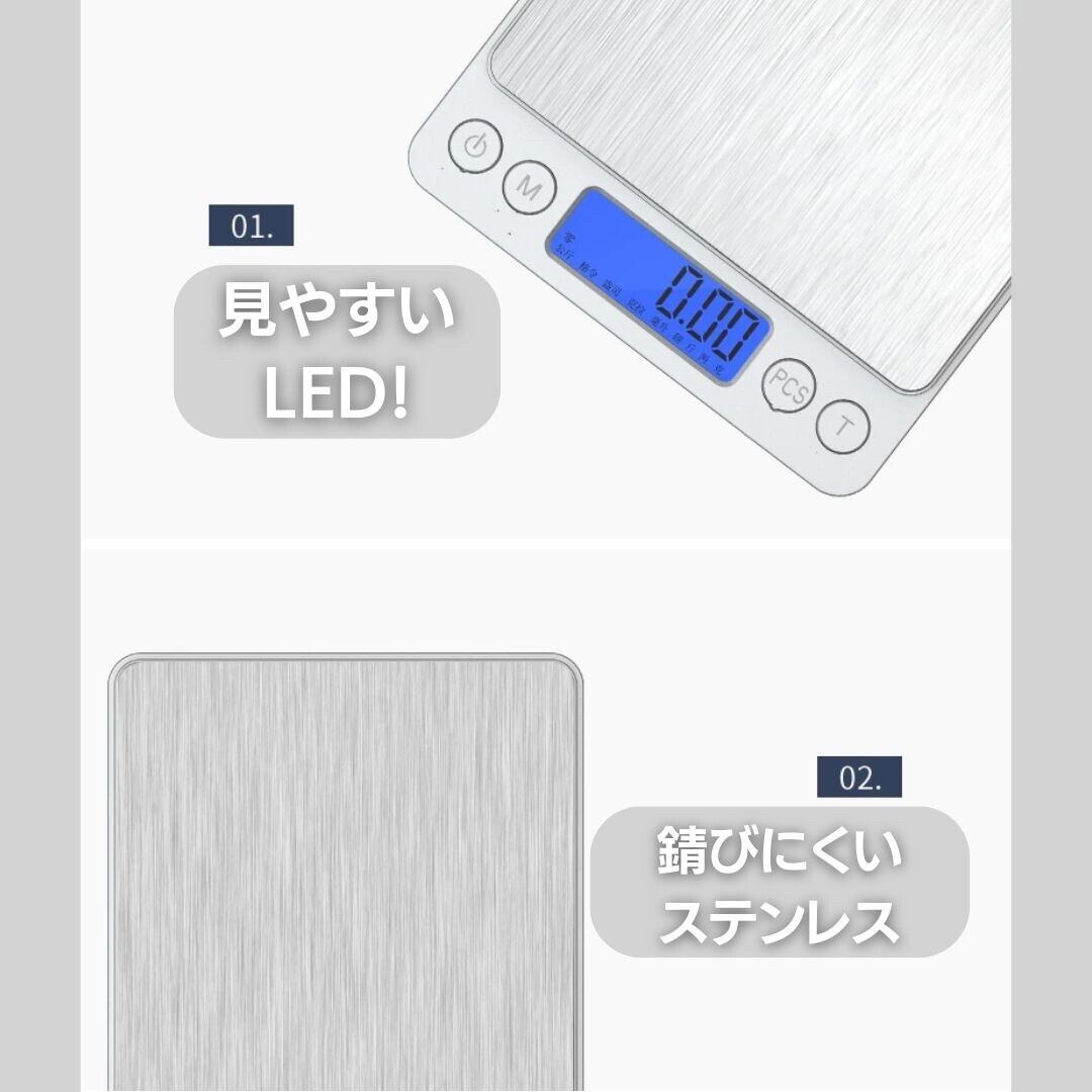 LEDブルー液晶ディスプレイで見やすくて使いやすい!デジタル・キッチン・はかり!低電量 過重提示システム搭載!