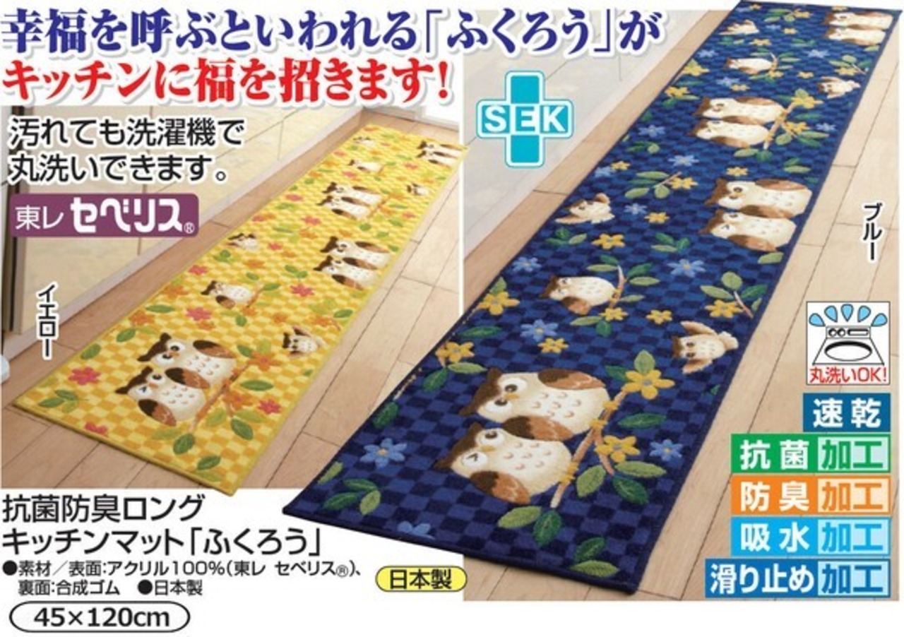 抗菌防臭ロングキッチンマット ふくろう 45×120cm