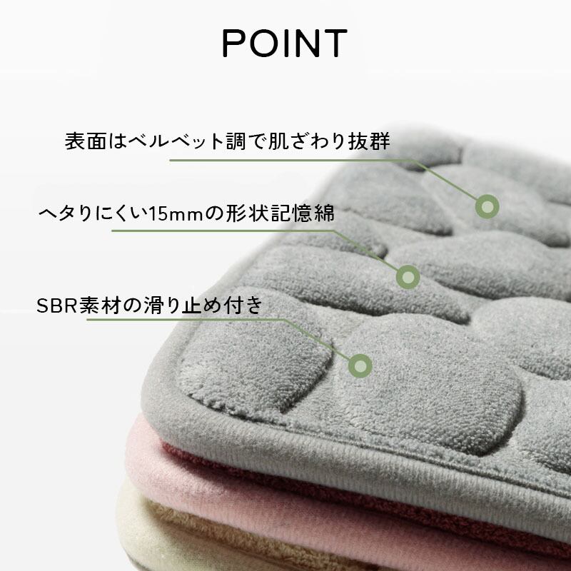 柔らかく吸水性に優れたタオル地を使用しており、素足で触れた瞬間、心地よい感触が広がります。バスタイム後も安心して使える優れたアイテムです!