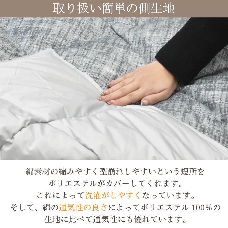 ホワイトダックダウン70%を使用した、軽量で洗える羽毛こたつふとんです。