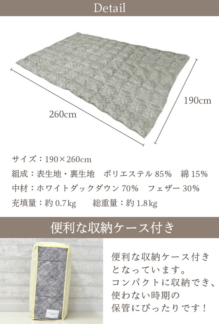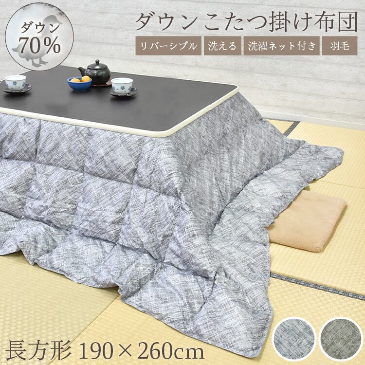 ホワイトダックダウン70%使用 洗える羽毛こたつ布団 長方形大サイズ 約190×260cm